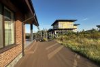 Панорамный вид. Домик барбекю с террасой (внутри остались отделочные работы), крытый бассейн с тепловым насосом до -5 С, гараж на 3 автомобиля с с/у.