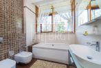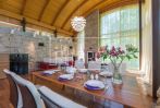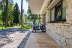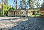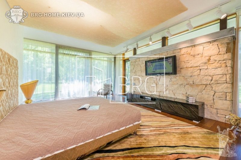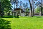 В доме 4 спальных комнаты, каминный зал с выходом на террасу, детская игровая, кухня, 5 санузлов, гардероб. Все хозяйственные помещения (прачечная и др.) находятся в отдельном здании.