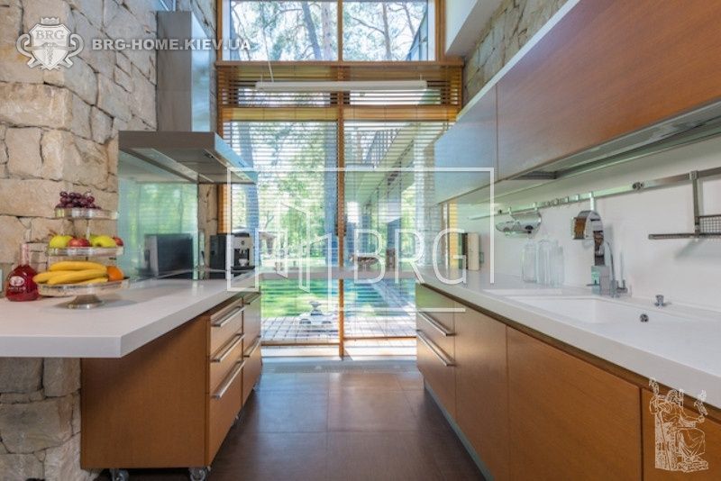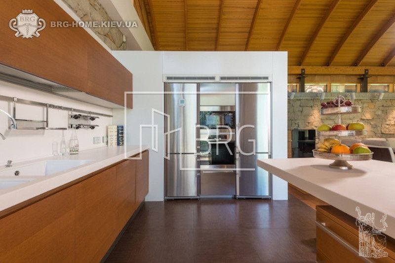 Дизайн дома полностью выдержан в современном стиле. Просторные помещения и высокие потолки дома с комбинацией панорамных окон дают невероятное ощущение простора. Прекрасный вид из окон.