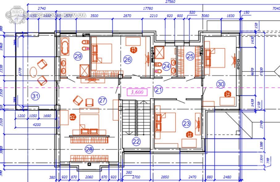 2-й этаж: мастер-спальня с с/у и выходом на балкон, 3 спальни, 1 гардеробная, ванная комната